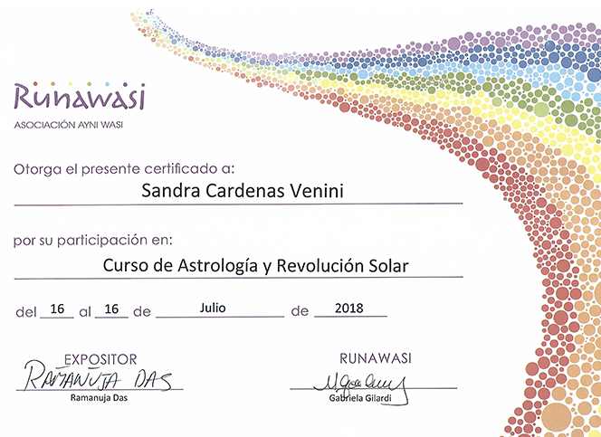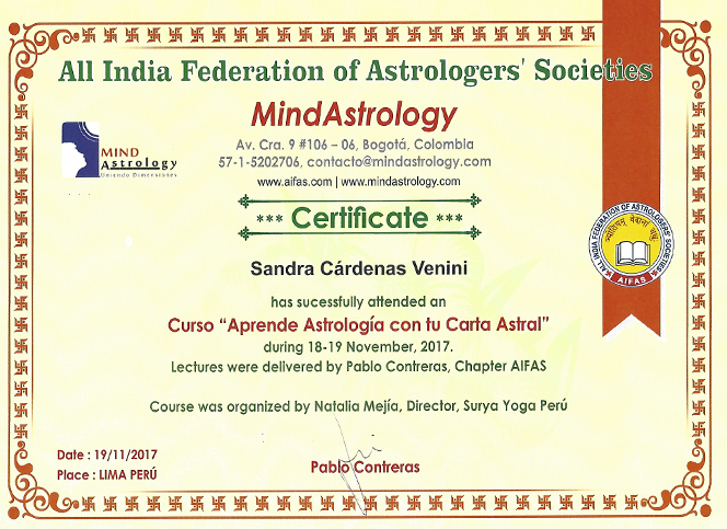 Mi propósito es que las personas al conocer su carta astral utilicen a la astrología como una herramienta de autoconocimiento energético y despertar de consciencia, aportando para esto mis conocimientos astrológicos estudiados en India y en diferentes países, de una manera simple, lógica y como buena sagitariana de sol y de luna que soy ..divertida!! así mismo posibilitar a que las personas a través de su libre albedrio manifiesten en este plano físico la vibración alta de su carta astral! en el universo no hay ningún solo objeto (planetas, asteroides, cometas) que no se mueva! vivimos en un sistema dinámico y evolutivo y obviamente nosotros no somos ajenos a eso!